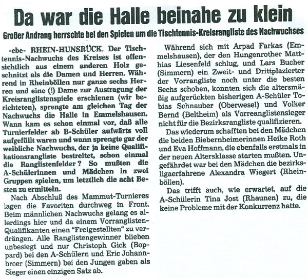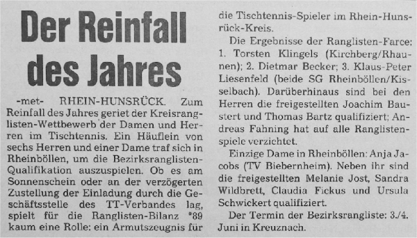 | Kreisrangliste Kreis Rhein-Hunsrück 1989/90 |