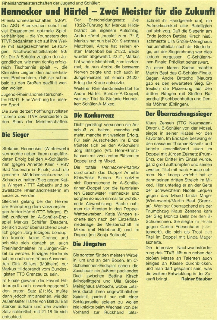 | Verbandsmeisterschaft TTVR 1990/91 | |||