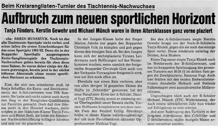 | Kreisrangliste Kreis Rhein-Hunsrück 1991/92 | |||