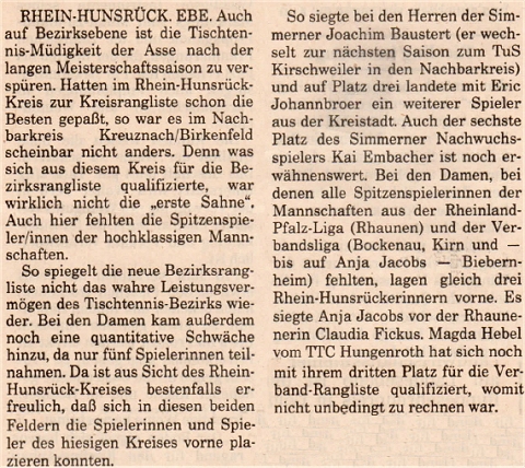 | Bezirksrangliste Bezirk Kreuznach 1992/93 |