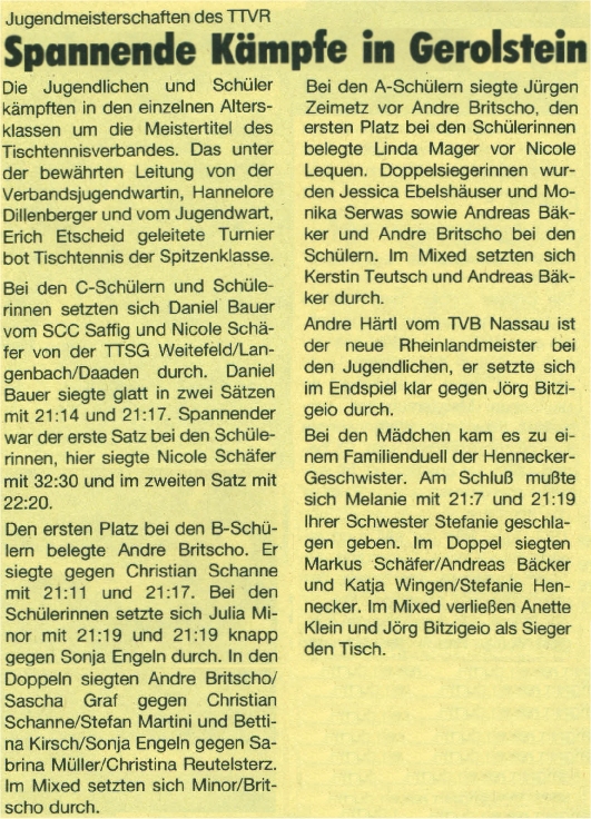| 1. | Nicole Schäfer | TTSG Weitefeld/Daaden | |