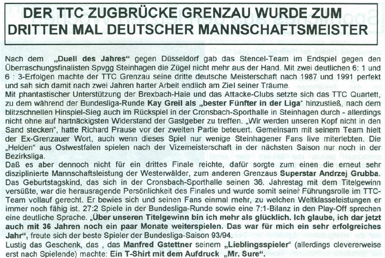 | TTC Zugbrücke Grenzau | SpVgg Steinhagen | 6:1 | 12:6 |