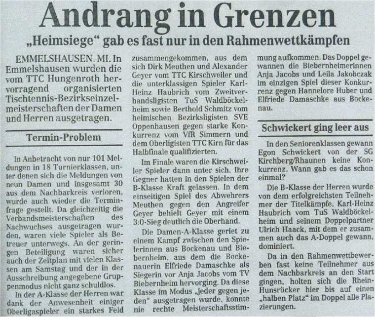 | 1. | Hannelore Huber (Kuhn) Dirk Meuthen | TSV Bockenau TTC Kirschweiler | |