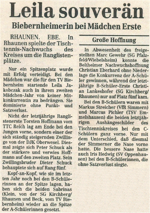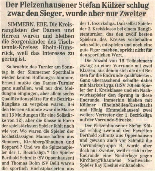 | Kreisrangliste Kreis Rhein-Hunsrück 1994/95 | |||