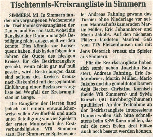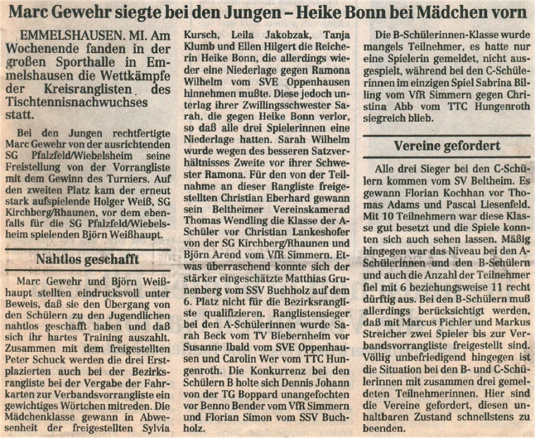 | Kreisrangliste Kreis Rhein-Hunsrück 1995/96 |