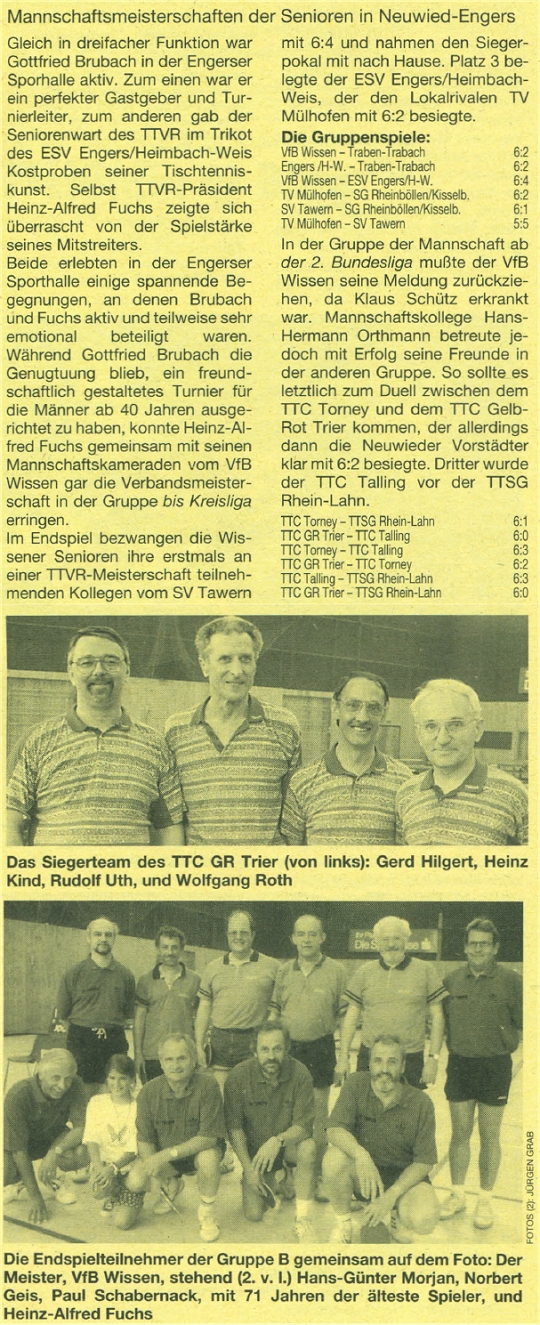 5.Platz in der 1.Verbandsliga: Der VfR Simmern mit Kurt Wilhelm, Bernd Schmitt, Eric Johannbroer, Mario Jakobs, Joachim Baustert, Martin Müller und Andreas Fahning