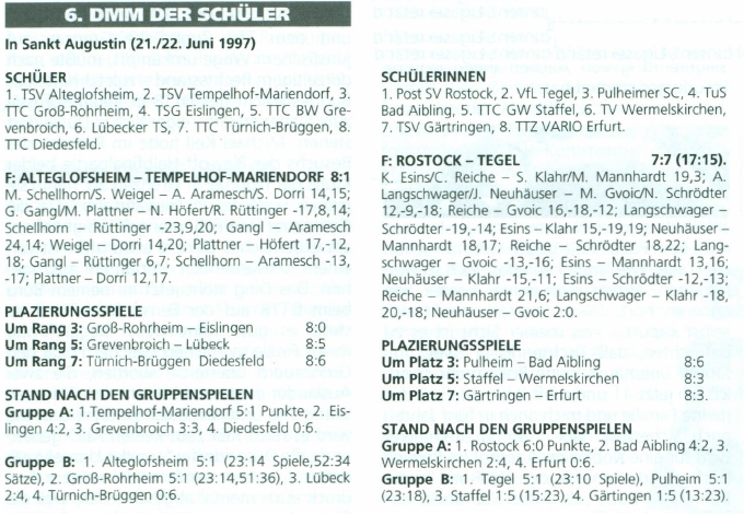 | Franz, Peter | Fetzner, Steffen | 16, -19, 0 | 2:1 |