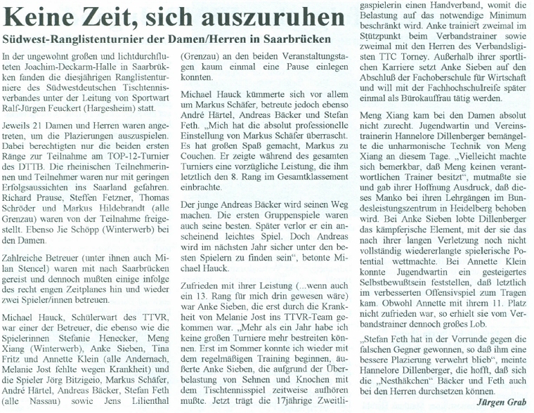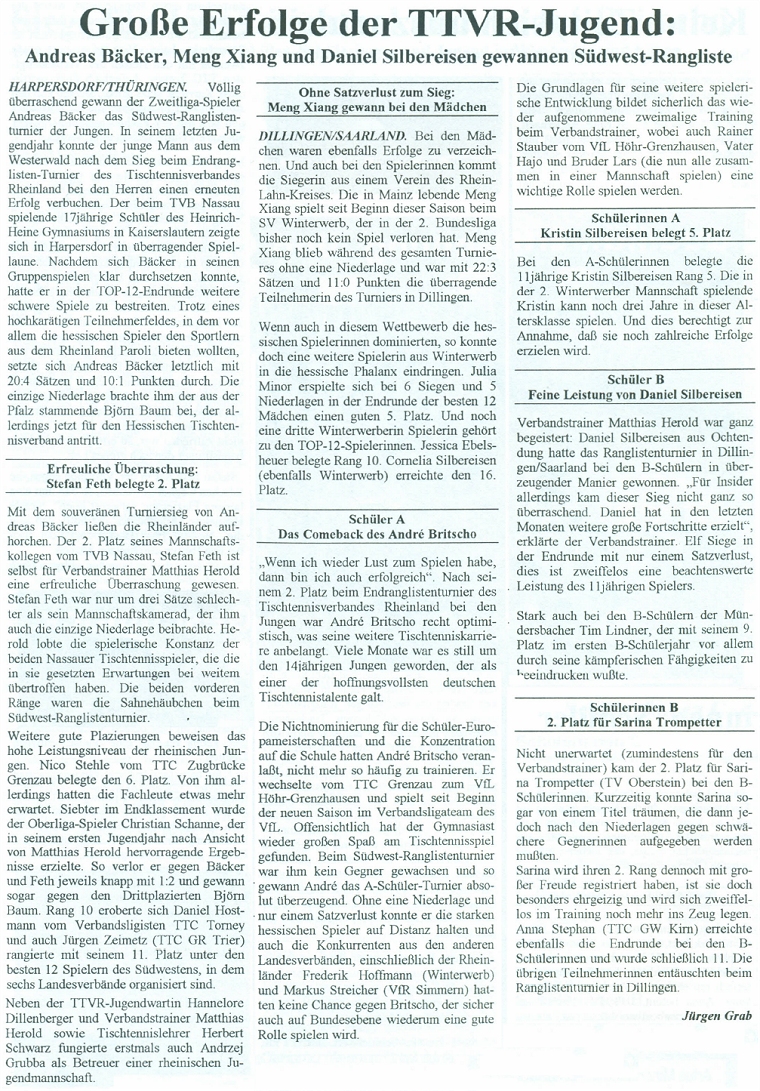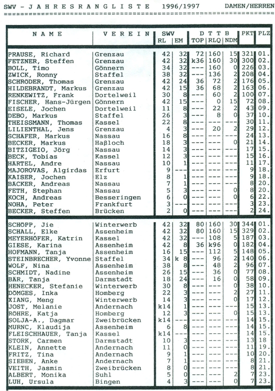 | Südwestdeutsche Rangliste 1996/97 |