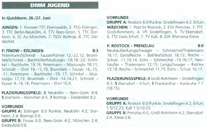 | TTC Frickenhausen | Borussia Düsseldorf | 6:3 | 13:8 |