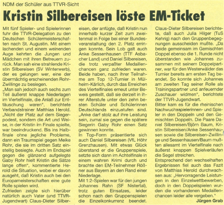 | 9. | Kristin Lang (Silbereisen) Klaudija Murnc | SV Winterwerb TSV 1909 Langstadt | TTVR HeTTV |