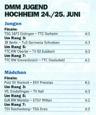 | TTC Frickenhausen | Borussia Düsseldorf | 6:1 | 14:2 |