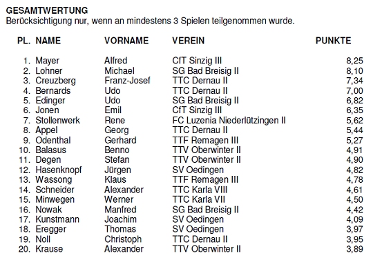 2.Kreisklasse Staffel 1 Herren 2000/01