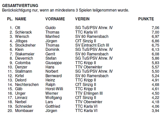 1.Kreisklasse Staffel 1 Herren 2000/01