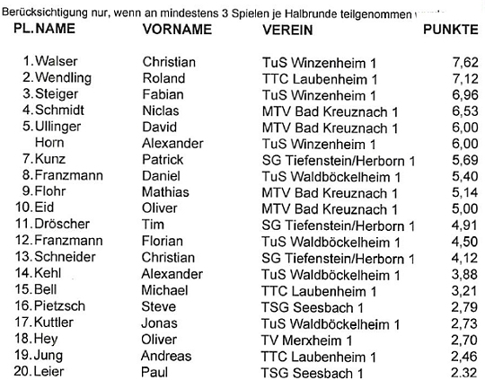 Regionsliga (Frühjahrsrunde) Schüler 2003/04