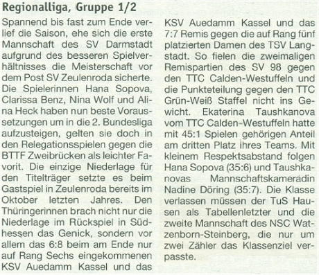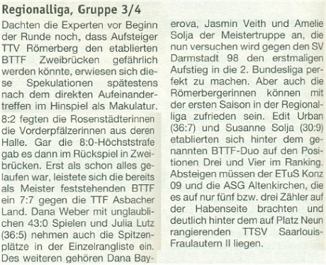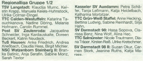 Den 5.Platz in der Regionalliga Südwest Gr.3/4 belegten die Damen von der SG Kirchberg/Rhaunen: