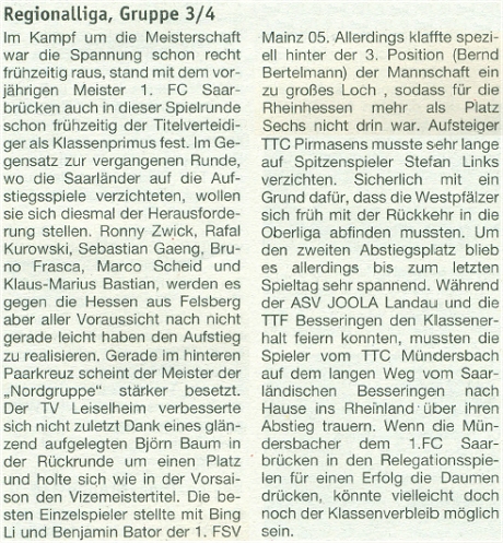 Platz 5 in der Regionalliga Südwest Gruppe 3/4 belegte die Mannschaft des VfR Simmern: