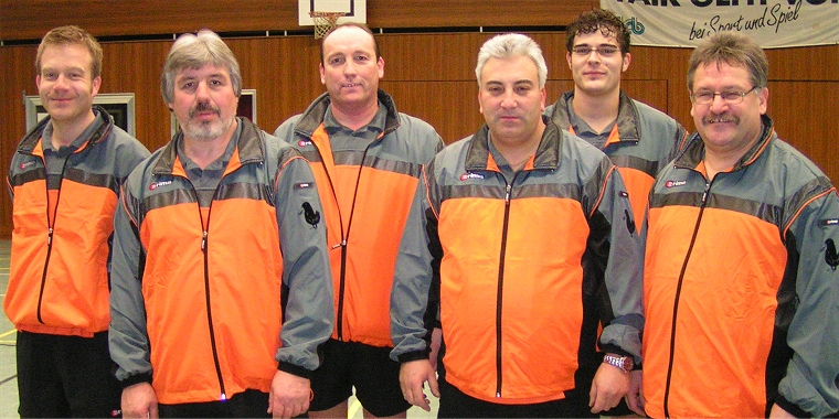 Platz 8 in der 1.Kreisklasse Staffel 1 belegt der TuS Rheinböllen 2 mit Patrick Borrmann, Reinhold Krämer, Martin Becker, Gerd-Peter Michelet, Heiko Blatt und Rochus Becker