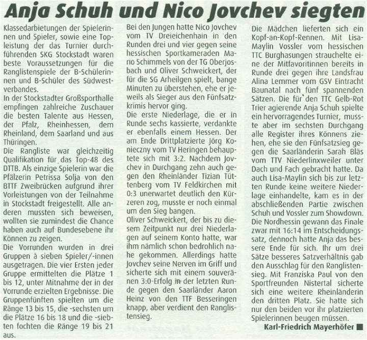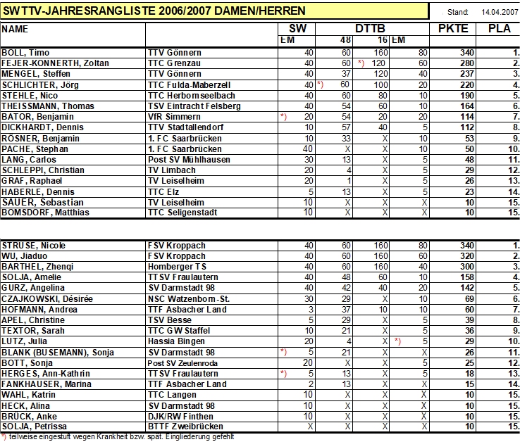 | Südwestdeutsche Rangliste 2006/07 | |||