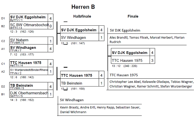 | TTC Berlin Eastside | SV DJK Kolbermoor | 3:2 | 11:9 |