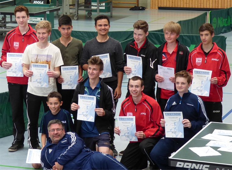 Die Teilnehmer bei den Jungen: Silas Auler, Felix Stölben, Nico Krämer, Jost Stölben, Alexander Löser, Timo Huhn und Nico Lamby
