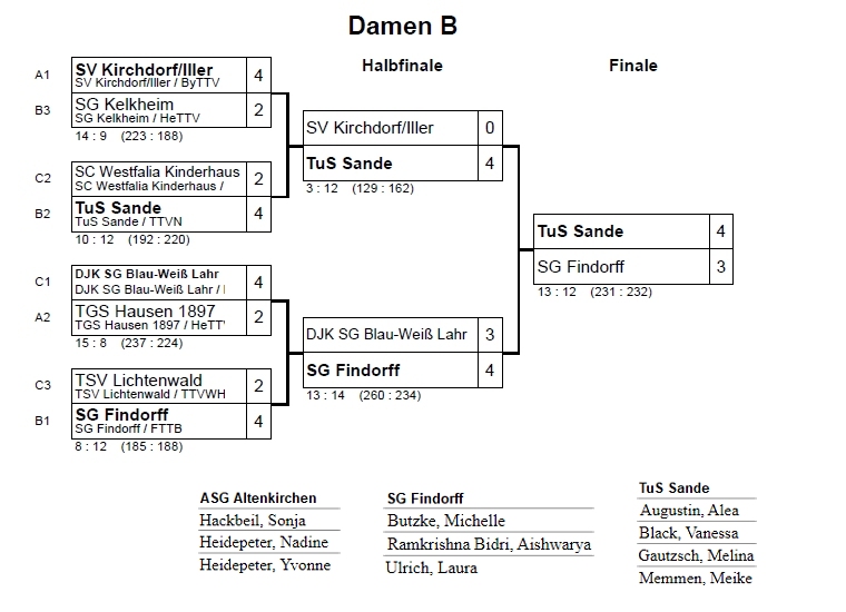 | TTF Ochsenhausen | SV Werder Bremen | 3:1 | 11:6 |