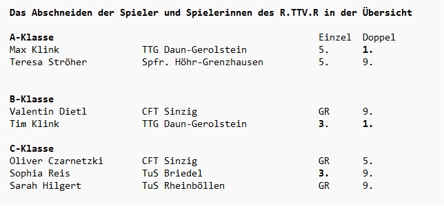 | 17. | Felix Meyer Til Sander | TuS Weitefeld-Langenbach TTC Berus | TTVR STTB |