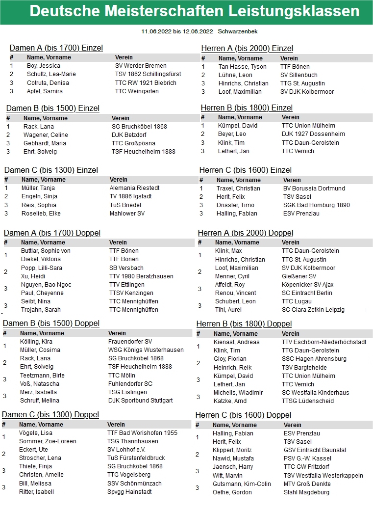 | 1. | Mia Griesel Vincent Senkbeil | TSV Lunestedt MTV Eintracht Bledeln | TTVN TTVN |