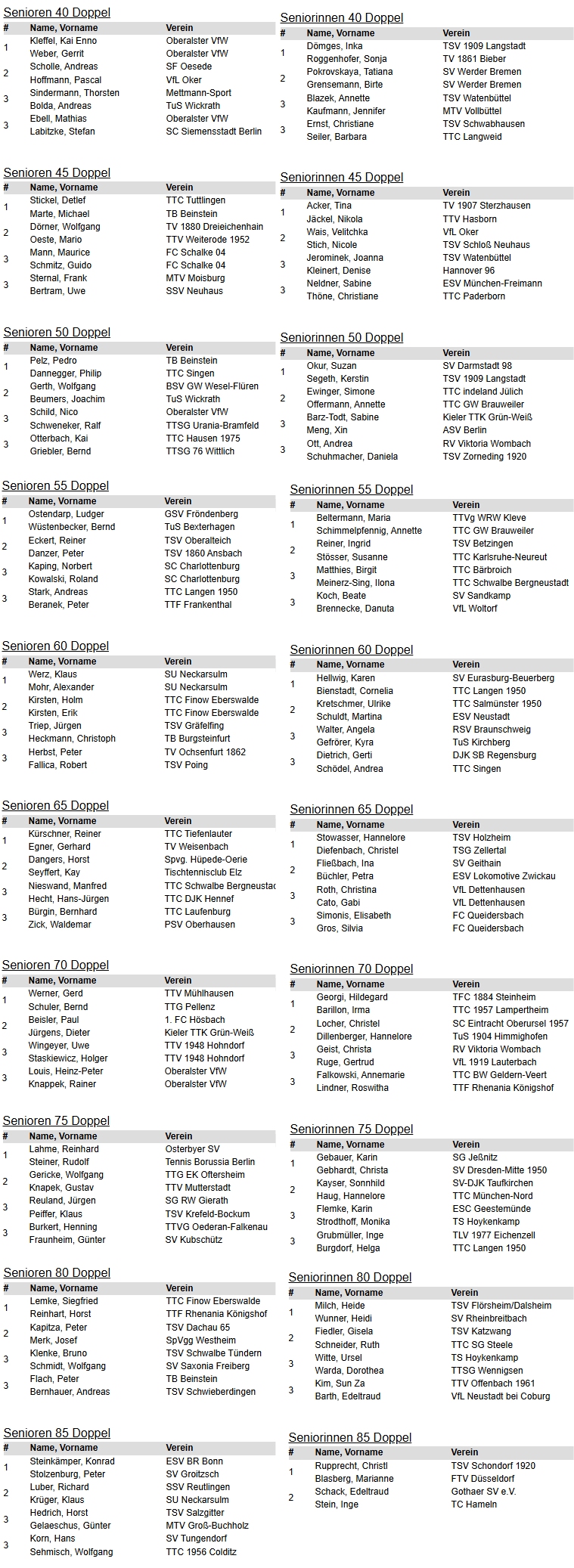 | 2. | Annett Kaufmann Franziska Schreiner | SV Böblingen TSV 1909 Langstadt | TTVWH HeTTV |