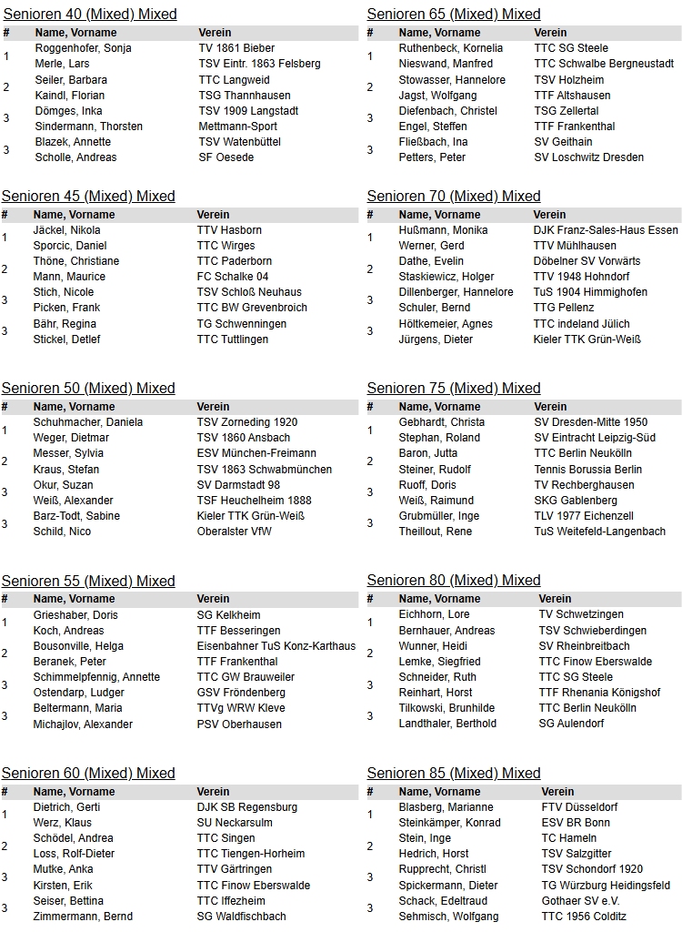 | Damen/Herren Mixed | |||