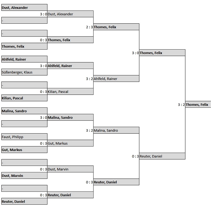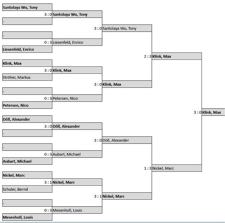 Felix Thomes belegte im U 15-Wettbewerb den 3.Platz im Einzel und wurde mit Tony Santolaya Wu Vizemeister im Doppel.
