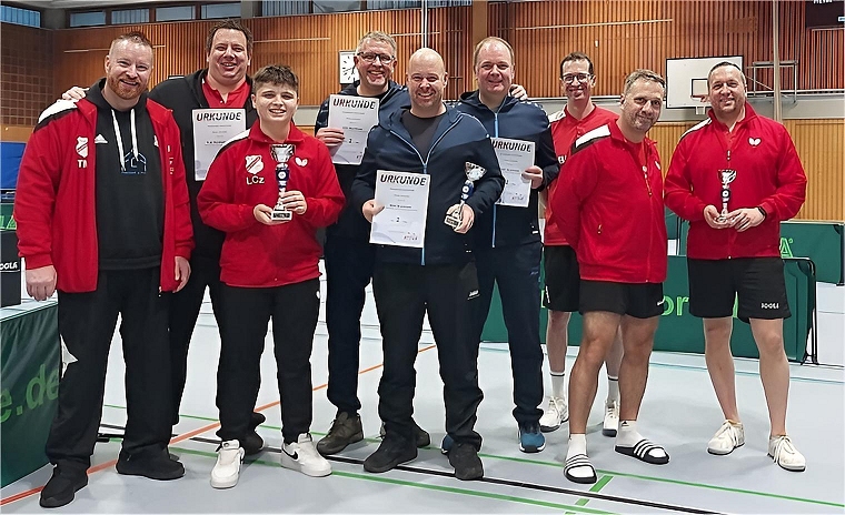 (stehend v.l. Artem Sagel, Alexander Sander, Georg Lunkenheimer, Herbert Goldschmidt, Victor Lam, Peter Schuck, Andreas Feit, Elmar Bremm, Dennis Böckler, Alexander Heimer, Kreisvorsitzender Jürgen Johann